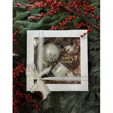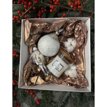Całość zamknięta w estetycznym pudełku prezentowym, gotowym do wręczenia – bez dodatkowych przygotowań. Box utrzymany w harmonijnej palecie bieli, srebra i beżu, doskonale wpisze się w świąteczny wystrój każdego wnętrza.