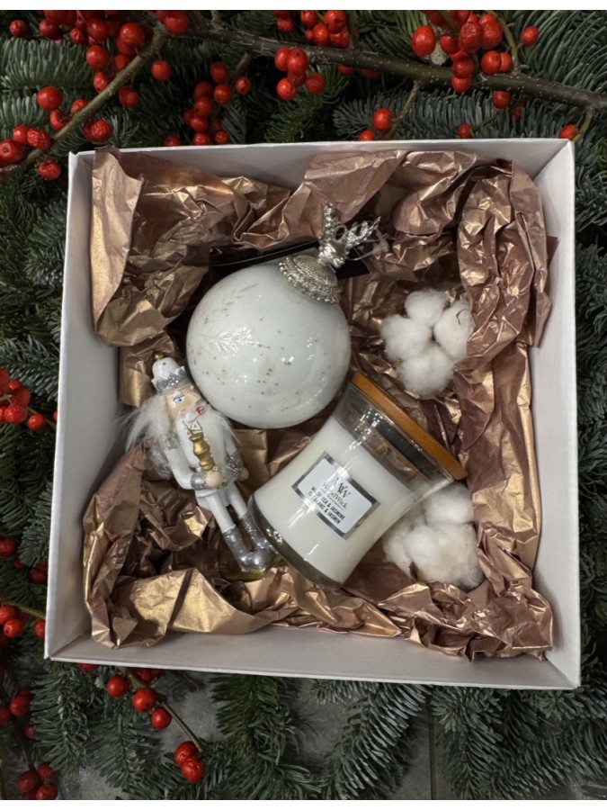Całość zamknięta w estetycznym pudełku prezentowym, gotowym do wręczenia – bez dodatkowych przygotowań. Box utrzymany w harmonijnej palecie bieli, srebra i beżu, doskonale wpisze się w świąteczny wystrój każdego wnętrza.