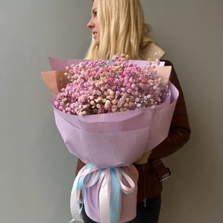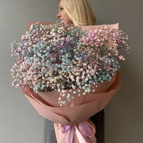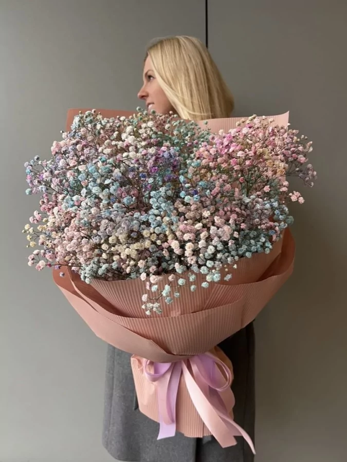 Kolorowa gipsówka owinięta w papier.