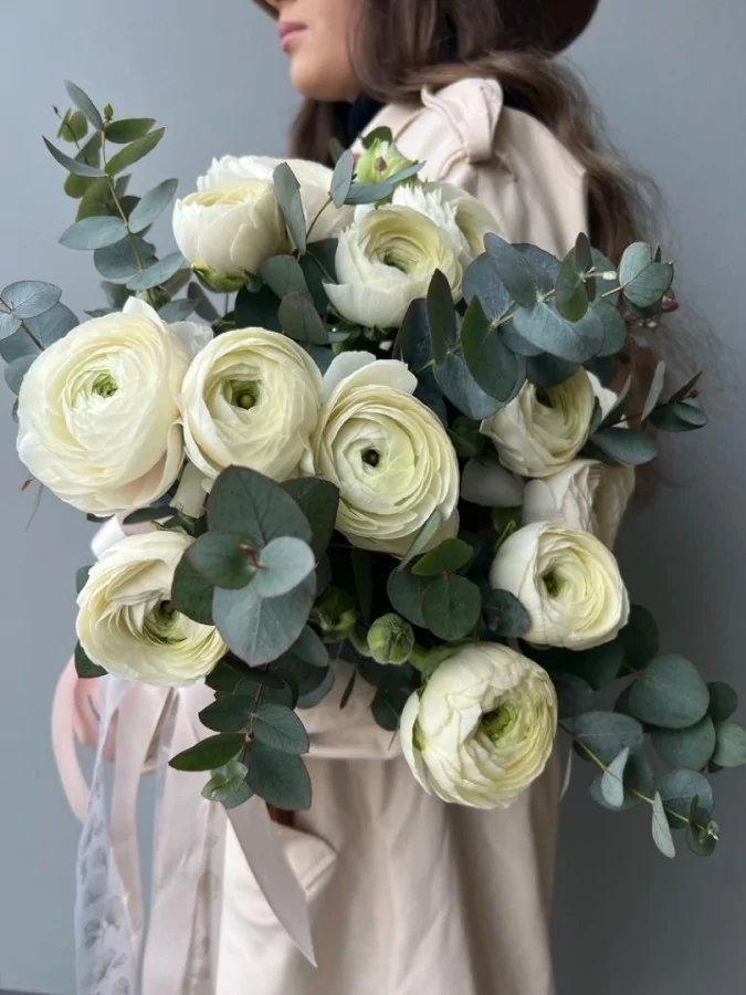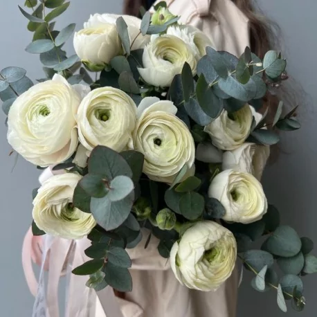 Lekki, romantyczny i pełen subtelnego uroku – bukiet "Anielskie Spojrzenie" to kompozycja stworzona z myślą o wyjątkowych chwilach. Składa się 15 eleganckich jaskrów, których delikatne, pełne płatki przypominają anielskie muśnięcie. Ich naturalne piękno podkreślają świeże gałązki eukaliptusa, dodając kompozycji lekkości i świeżości.